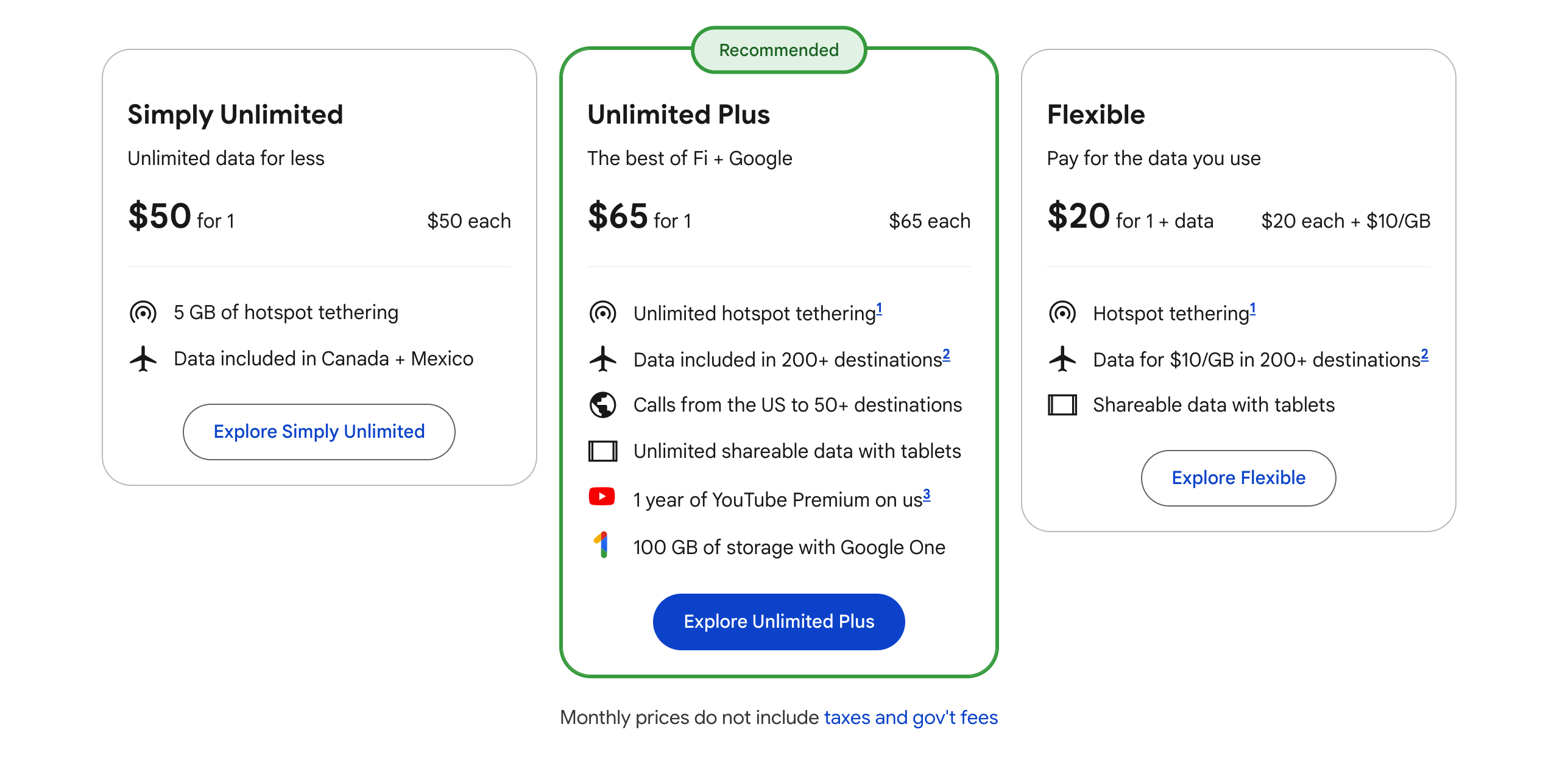月額20ドル(約2800円)からの従量課金プラン「Flexible」や月額65ドル(9200円)の無制限プランなどがあり、テザリングも可能。しかもこれらのプランは「一時停止」できるので、使わない際には出費を0円にすることもできます。