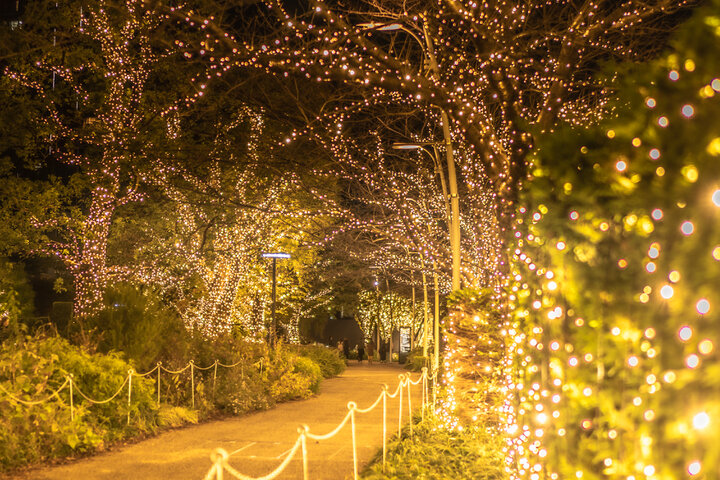 ゴールドの光が街の木々を彩るツリーイルミネーション「光の散歩道」が今年も登場。