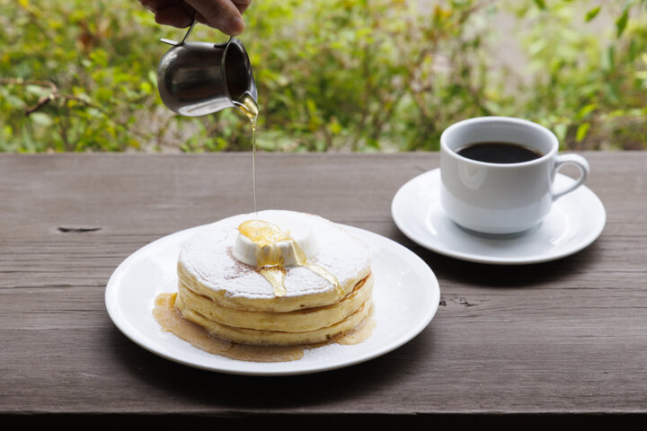 オープン当初から人気のスイーツといえば、アメリカの朝食で一般的なメニューである「クラシックバターミルクパンケーキ(メープルシロップOR蜂蜜)」(1680円)。顧問のアメリカ人シェフが考案されたそう。