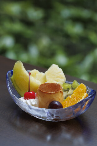 崇敬会館として以前からあった場所ですが、そこに地元の方々に惜しまれつつ閉館した旧橿原観光ホテルのシェフたちが腕を振るうカフェとして誕生しました。メニューには、カフェタイムに楽しみたいボリュームたっぷりな抹茶パフェをはじめ、ホテル時代から親しまれたプリンを改良してつくられた人気のプリンアラモードなどが揃います。大和肉鶏の飛鳥鍋風うどん1200円や蒸し柿の葉寿司にゅうめんセット1400円(夏期はそうめんセット)など奈良らしさを感じられる軽食もあるので、ランチにもぴったりです。